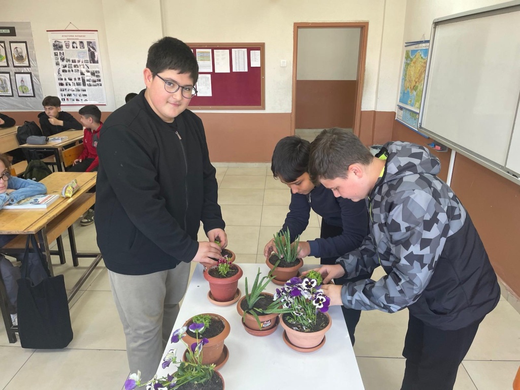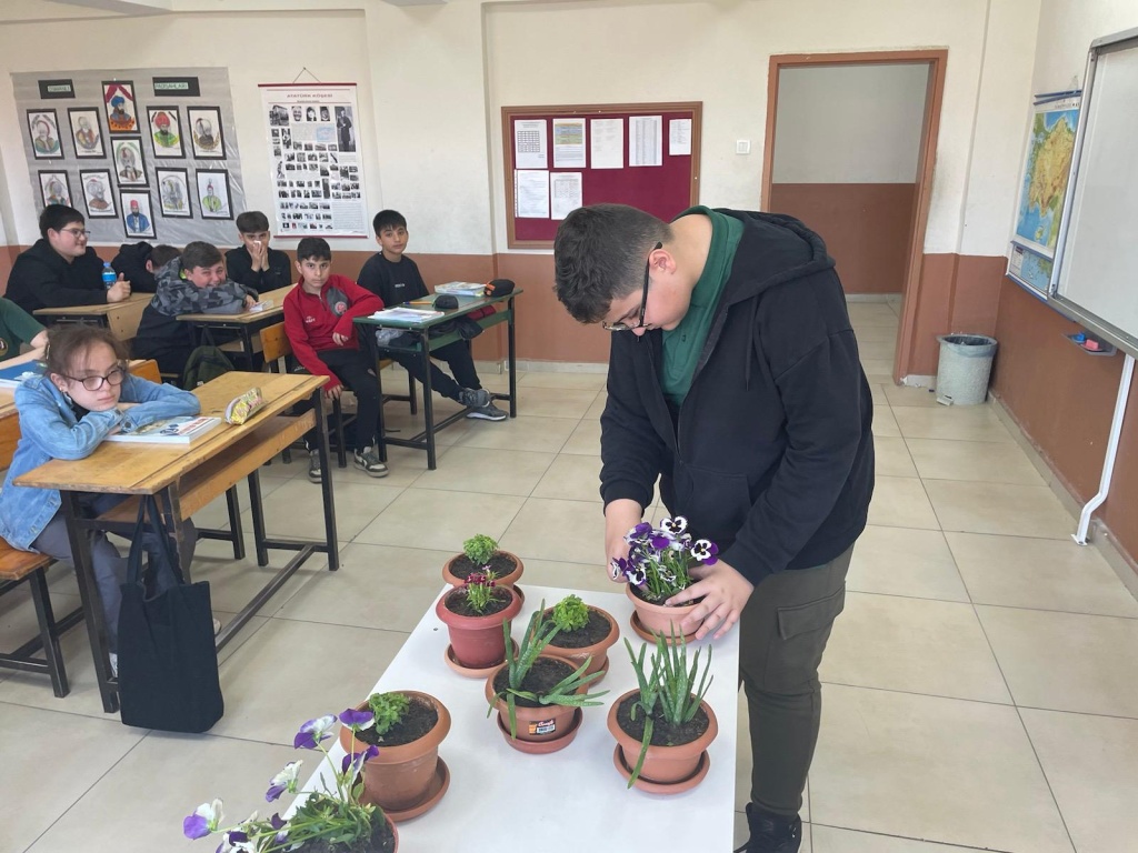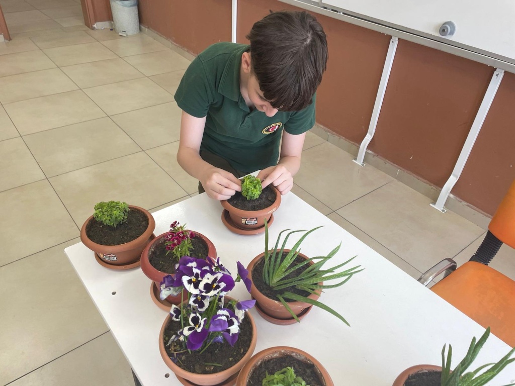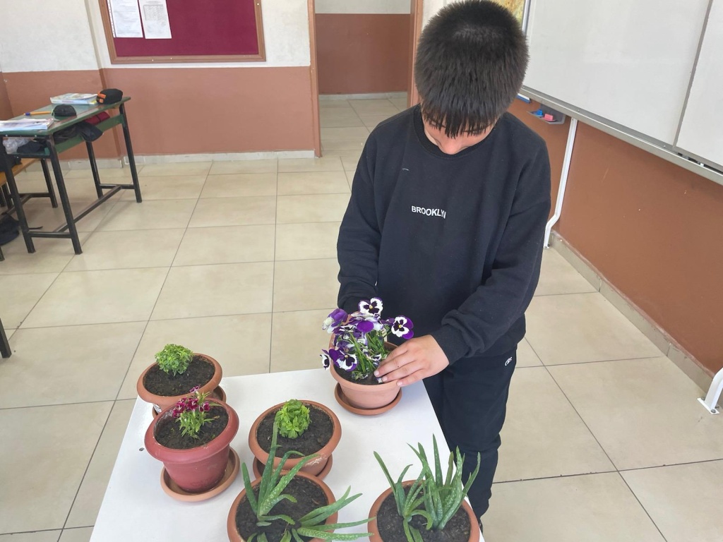 Okulumuz öğrencileri bitki yetiştirmenin detaylarını öğrenerek çiçek ekimi yaptı, sınıfın belirli yerlerine ekilen çiçekler günlük bakımı gerçekleştirilmek üzere öğrencilere görevlendirme yapılmıştır.